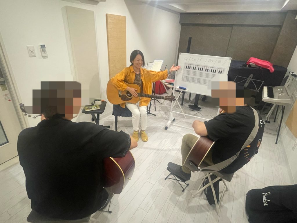 女性ギター講師がリードして指導してくれるので、とっても安心♪