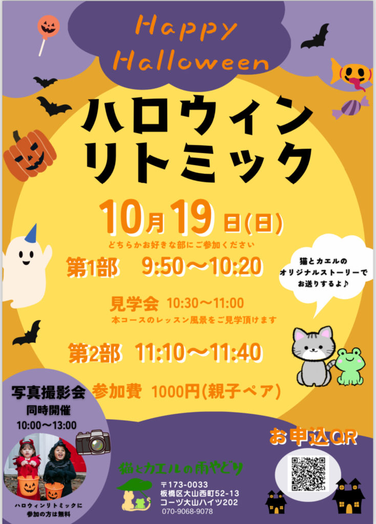 「猫とカエルの雨やどり」のオリジナルストーリーでリトミックを開催します。