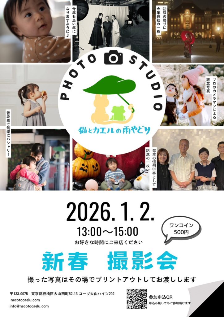 音楽教室でもある「猫とカエルの雨やどり」は写真撮影スタジオとしても運営しております。