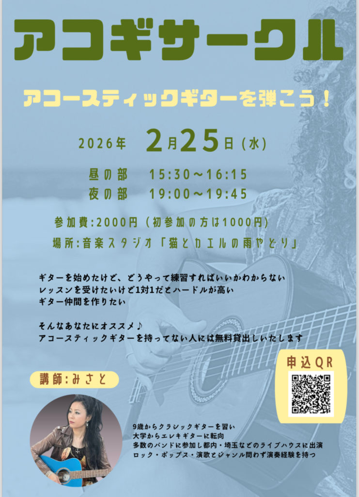 女性ギター講師がリードして指導してくれるので、とっても安心♪